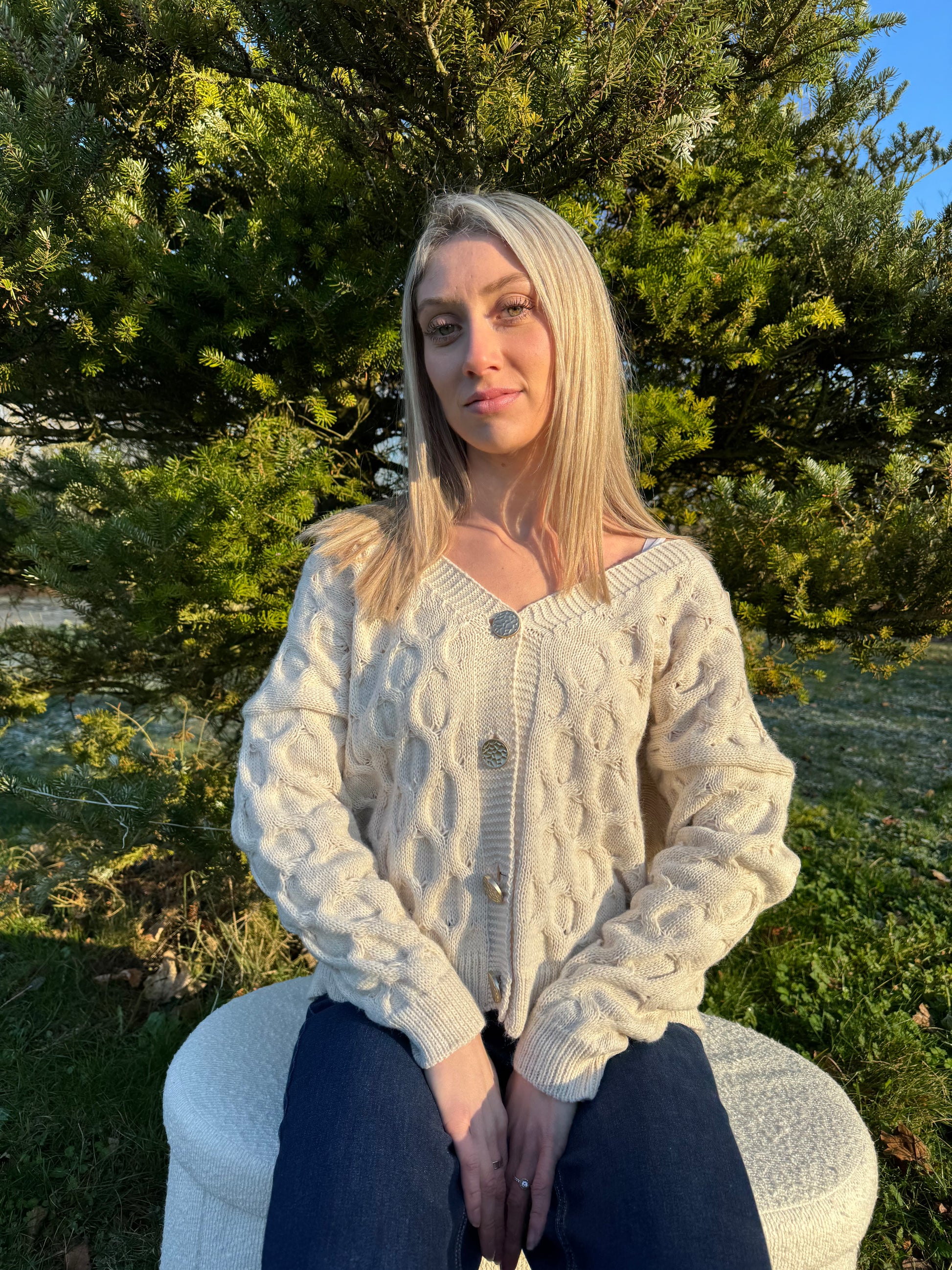 Laisse-toi séduire par le charme authentique de ce cardigan beige à mailles torsadées, une pièce essentielle pour celles qui recherchent confort et élégance au quotidien. Conçu dans une maille douce et chaleureuse, il se distingue par son tricot texturé qui apporte du relief et une touche artisanale irrésistible. Sa coupe légèrement oversize assure une grande liberté de mouvement tout en créant une silhouette décontractée mais toujours raffinée.🧸